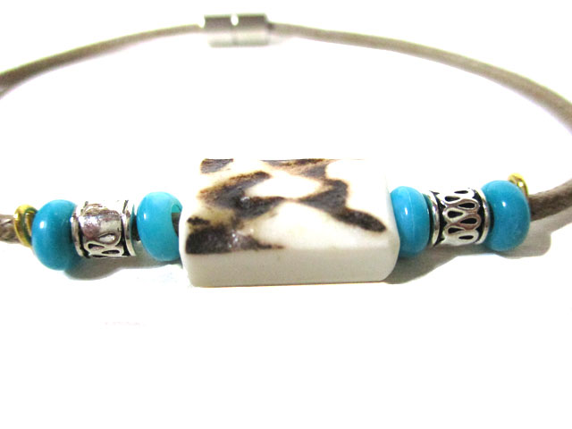シカの角をパーツに取り入れたマグネットブレスレットになります。