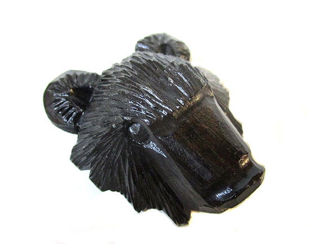 毛彫りをされた熊の顔で、見た目にはポリやプラスチックのような素材に