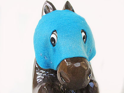 覆面は手作りで個々に異なる微妙な形状のお馬さんの顔に個別に取り