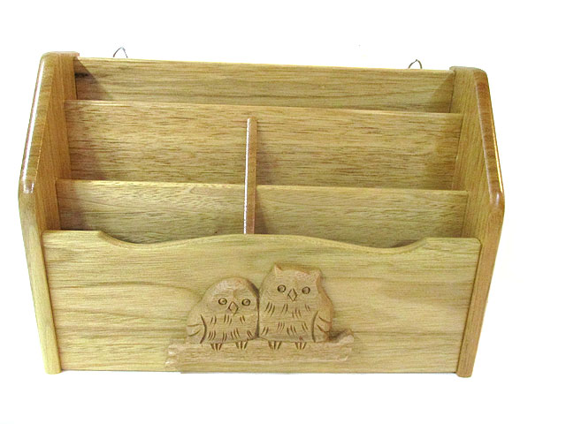 つがいのふくろう(ふくろう)を彫り物として取り付けた木製の卓上状差し