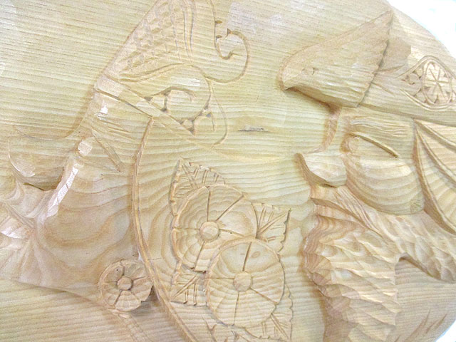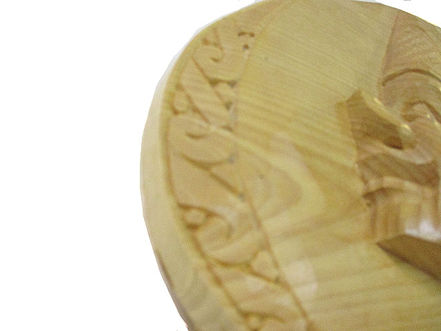 木彫りレリーフで着色の無いタイプの一品作で多く使われる栓(せん)材