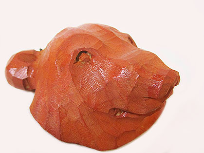 黒や茶系が主流の着色である木彫りの熊(本品は熊マスク)ですが