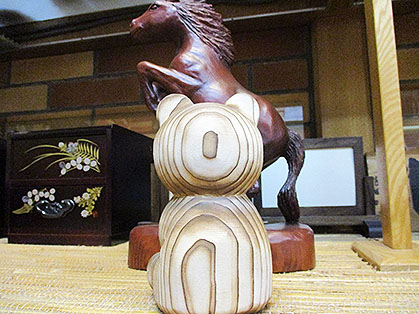 木彫り馬をおいて気分だけでも午年を演出。