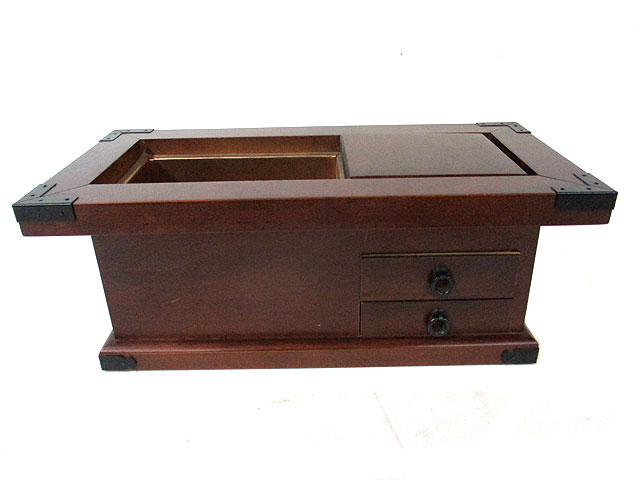 茶だんすのように引き出しが2段備わっている火鉢です。