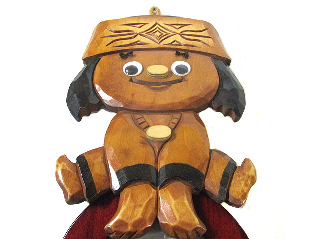 手の込んだ彫り物創作状差しのアイヌメノコちゃんです。