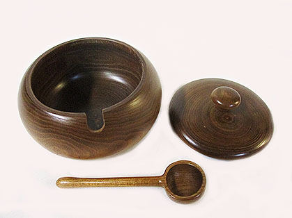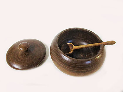槐の小ぶりサイズのシュガーポットでシンプルデザインの品です。