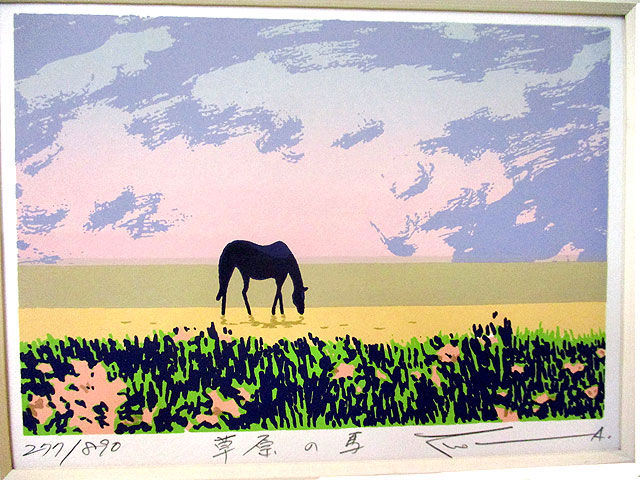 そのようなことで、草原のお馬さんの版画です。中身はポストカードサイズ。