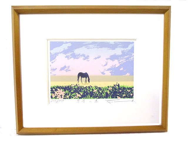 草原の馬 本間武男 版画