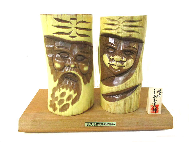 槐(えんじゅ)材の木彫りアイヌ人形を当て字で「延寿」としております。