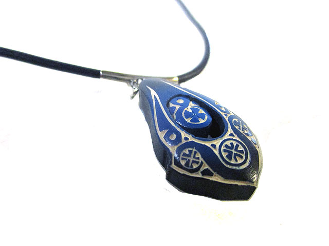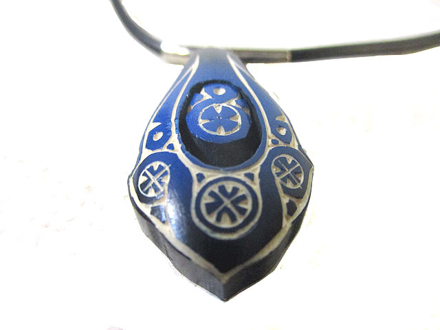しずく型の木製のアイヌ文様彫りのチョーカです。