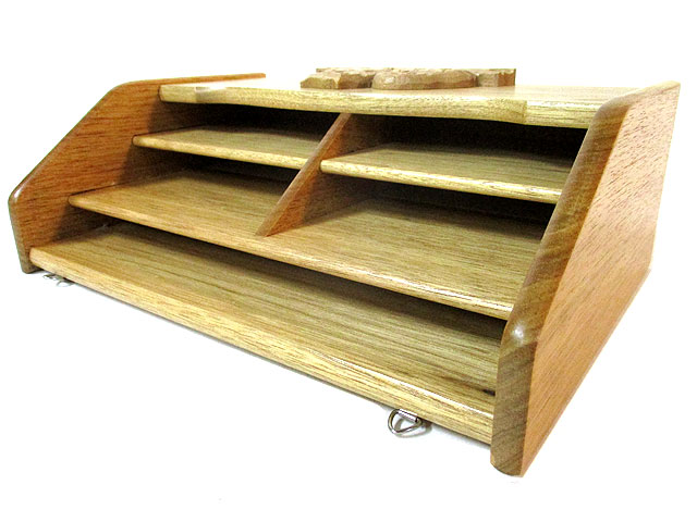ラックと申しても平たい段に置くように使用の品とは異なり、小物入れを郵便入れ用にした卓上型のラックとなます。