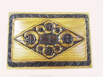商品の上部や側面にアイヌ紋様を彫り込んでおります。