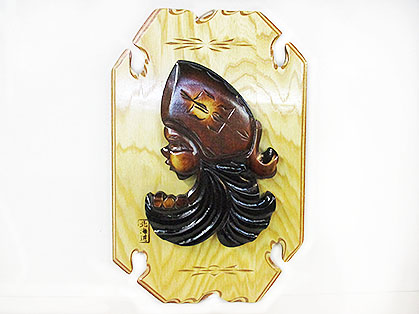 アイヌメノコは半面彫りで張り合わせての壁掛け仕上げとなっております。