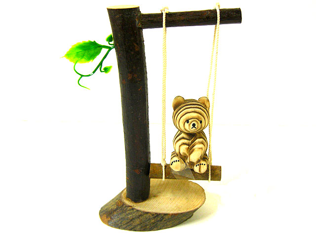 小サイズの熊ぼっこがブランコに乗っている作品です。