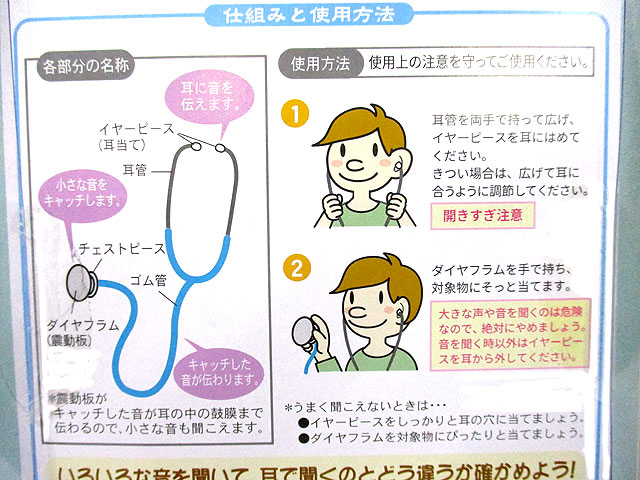おもちゃ? 玩具ではありますが、性能は良くて本物にひけをとらない優れものの聴診器であります。