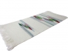薄いグレー色の本体色にグリーン系の色合いに数色の色合いを混ぜた 横ラインの模様で「壁画」のタイトルの作品です。 織物として北海道旭川で作られた手織りの品とな...