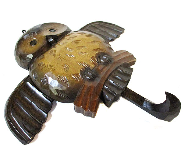 ふくろうは壁掛け用として壁や柱にかけれるように後ろ側は半割れ彫り