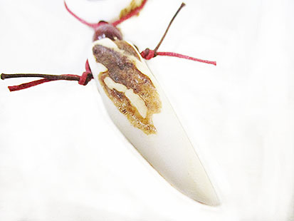 鹿(シカ)の角(ツノ)を削ってとがった部分を先端に、加工の際に