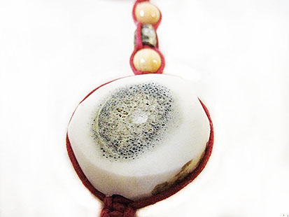 出る端材もような輪切り部分を丸形パーツとして装飾品として取り付