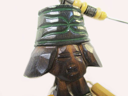 胴体の縦幅4cmの彫り物アイヌメノコに紐パーツの手足を取り付けて
