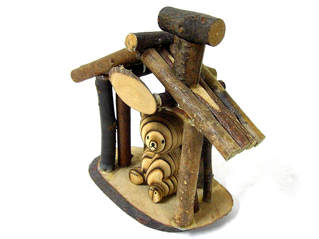 中に入れる大きさは、熊ボッコの小サイズと中サイズが入りますので商品名を「熊ボッコ中 山小屋」