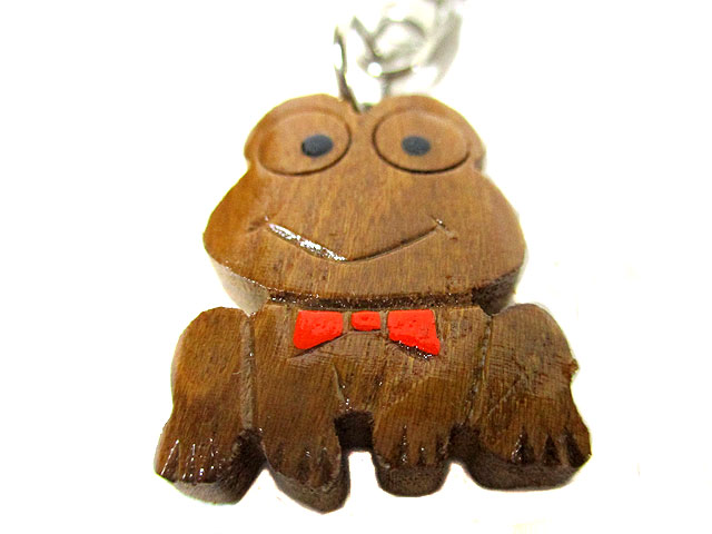 平面タイプの木製(エンジュ)の蛙(かえる)のキーホルダーです。