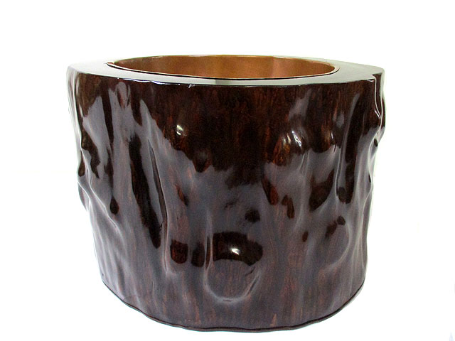 丸太のぶつ切り状のものの中を繰りぬき火鉢(ひばち)として実用的に