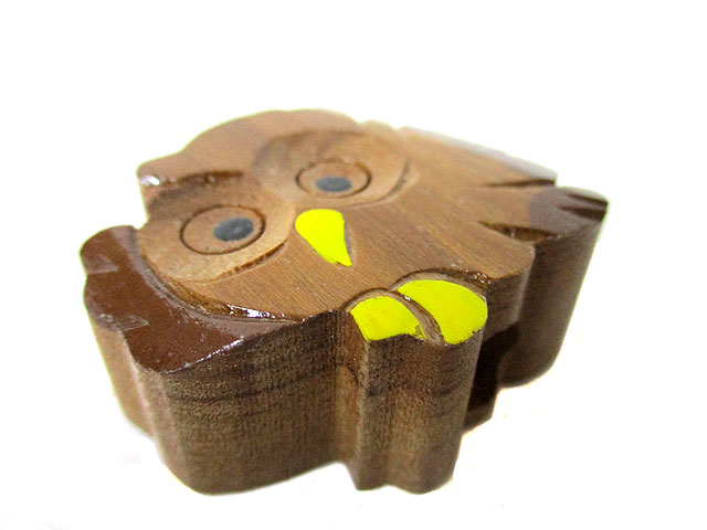 手づくりの木製のふくろうの鉛筆削りになります。