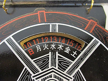 あけるように、指先に力をこめてググッと動かして日にちと曜日をあわせ