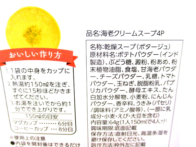 海老、えび、エビのポタージュスープですので、他の箱入りの野菜スープ