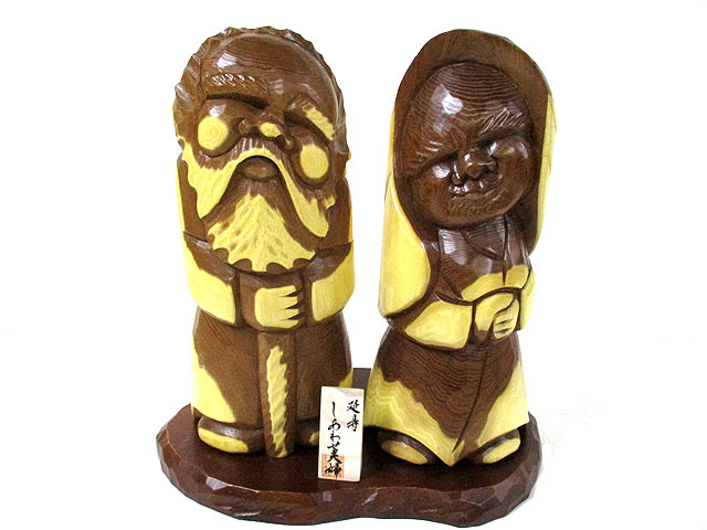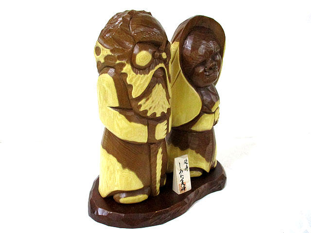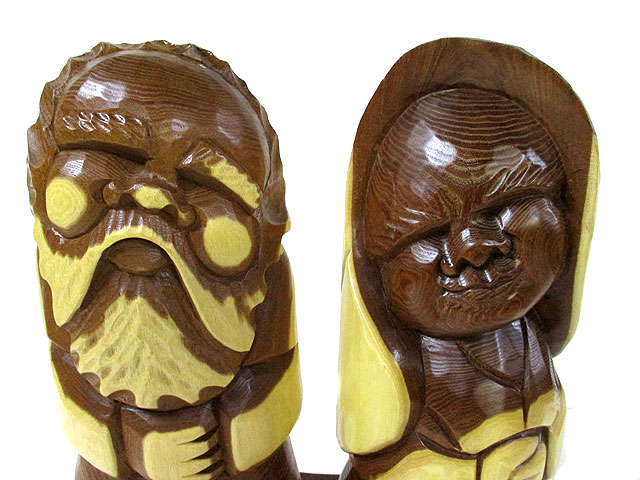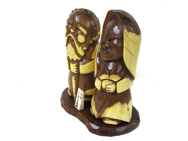 エンジュ材で彫り上げた夫婦人形の大きなサイズ(高さ30cm)タイプになります。